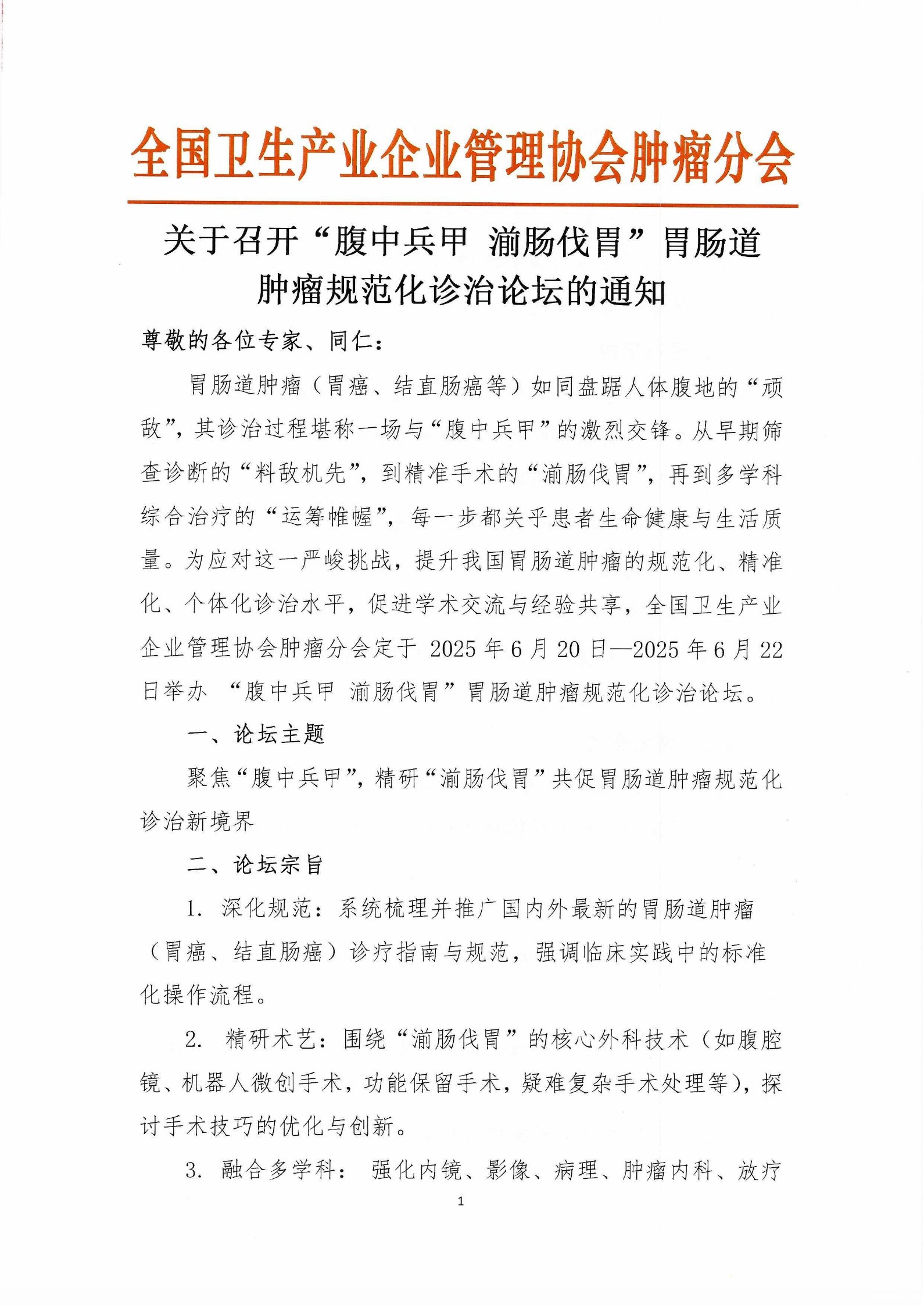当前位置:首页 > 通知公告 会议通知-“腹中兵甲 湔肠伐胃”胃肠道肿瘤规范化诊治论坛